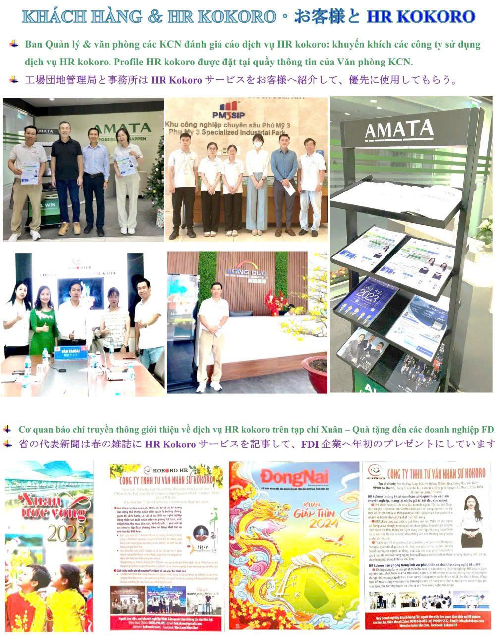 - Chính nhờ giá trị thiết thực mang lại, HR Kokoro được cơ quan báo chí, truyền thông và ban quản lý các khu công nghiệp tin tưởng tuyên truyền, quảng bá rộng rãi cho doanh nghiệp. Nhiều công ty nước ngoài đã ưu tiên lựa chọn HR Kokoro là đối tác tuyển dụng chiến lược, góp ý xây dựng môi trường lao động chuyên nghiệp và bền vững.