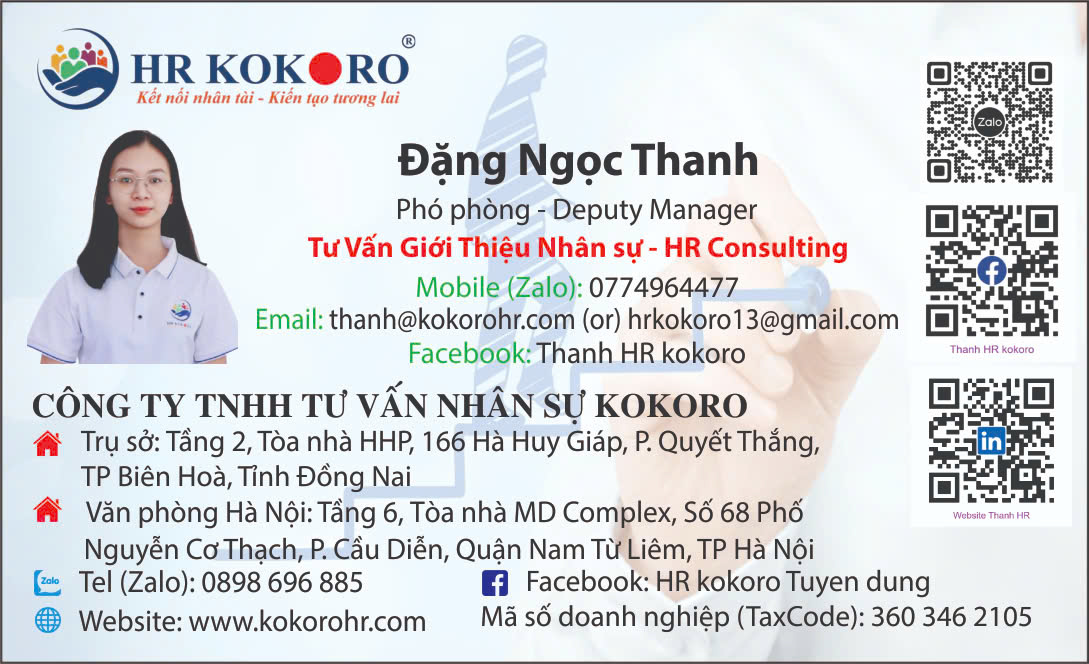 ✅ Thông tin liên lạc của đội ngũ tư vấn việc làm HR kokoro. (Quét mã QR để kết nối Zalo ngay với Nhân sự Tuyển dụng).